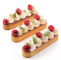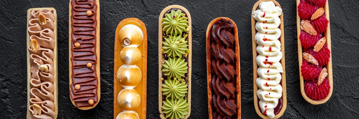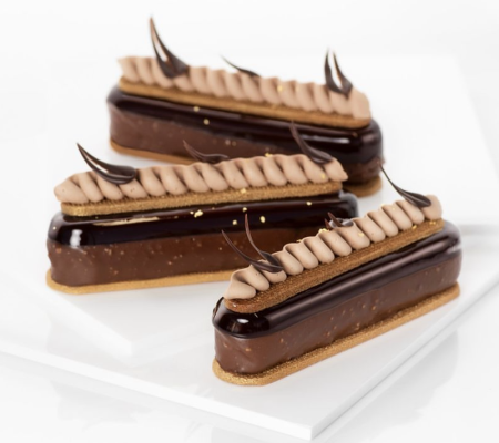 Le chocolaté : La mousse gourmande au chocolat lait prendra du caractère avec son insert coulant à la cacahuète. Un glaçage chocolat et un sablé croustillant viendront parfaire votre éclair.